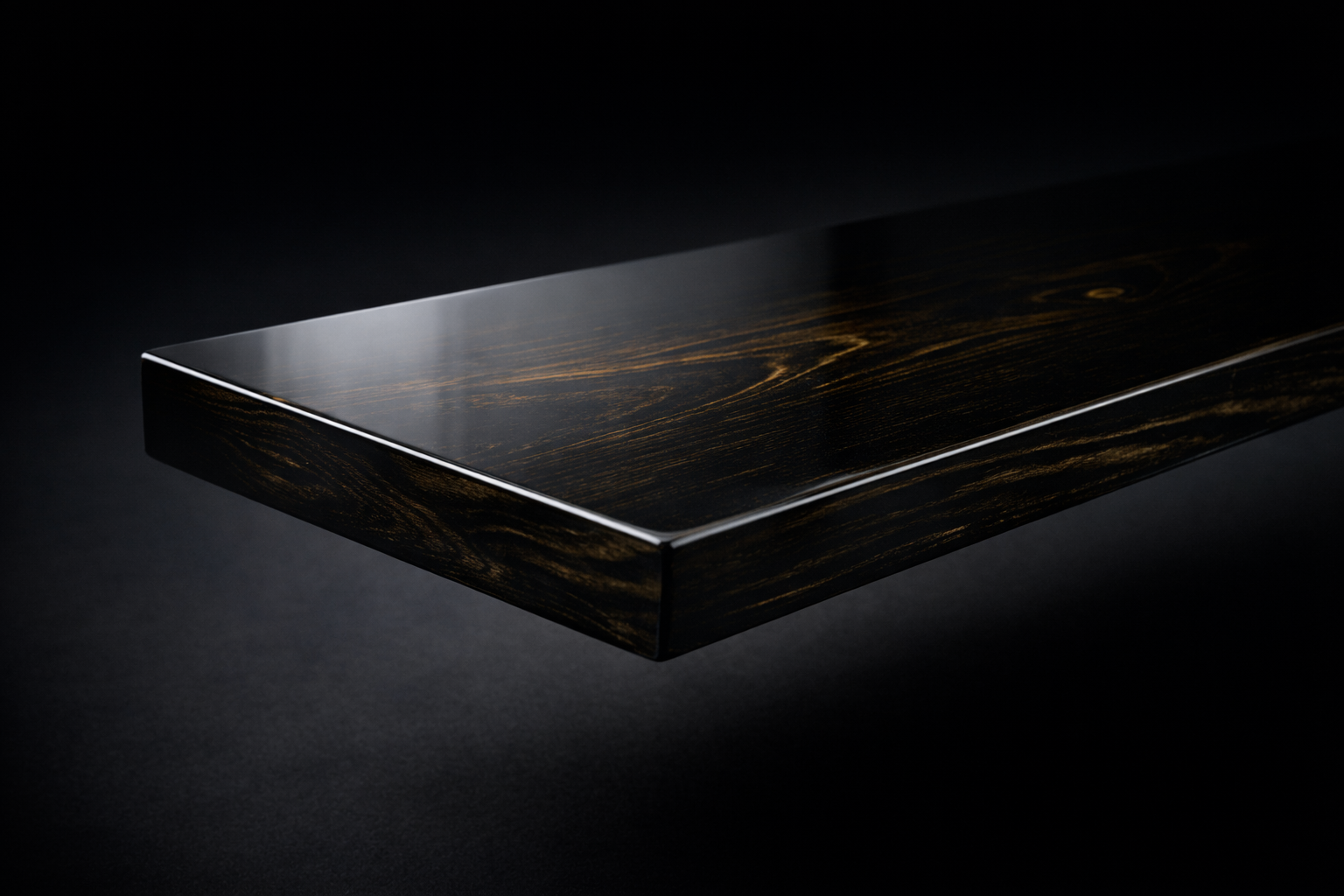 Our high-gloss finish almost feels like glass layered over real wood β smooth, reflective, and deeply luxurious, yet natural to touch.