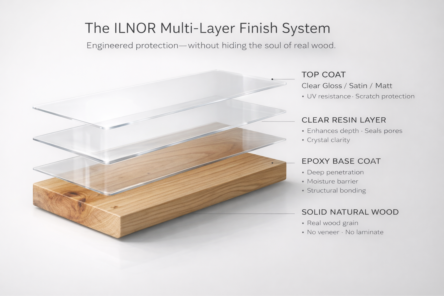 Unlike ordinary finishes, our coating seals the wood without masking its grain, warmth, or character.